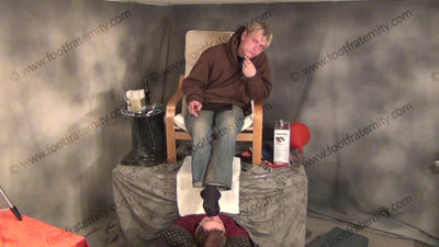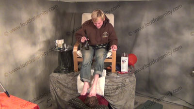 In jeans, sneakers, hoodie, very sweaty and dirty blue sweat socks with gold ring, very cocky and arrogant, Nathan is teasing his slave who is laying on the floor beneath his feet for teasing, dominating and more. Cash, gifts and more. Sissy is forced to serve his macho young socks and feet and is totally embarrassed and humiliated as next he shoves his sweaty bare feet in the sissy’s face and torments and teases and mocks his slave who can’t resist, while he gives commands, orders and responds to his foot licker! Slave kisses and serves the socked feet, adoring them, smelling them, then bare foot worship and forcing slave to humiliate himself with shoving his foot in the mouth; He likes to show where his toes belong; three camera views (one close up) two other hot angles; Hot erotic foot action during this time as Nathan’s straight feet are served. His control at teasing ways of mocking foot sissys is real as he laughs at our desperate needs and humiliating images of foot sissys in love with his feet. He really likes this worship and teases the sissy for needing to worship his feet and be his foot bitch. This blonde jock rules with foot power.