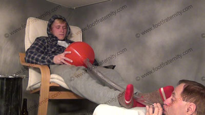 In sweatpants, sneakers, hoodie, very sweaty and dirty light brown/red work sweat socks, very cocky and arrogant, Nathan is teasing his slave who is kneeling at his feet at the foot stool for teasing, dominating and more. Teasing. Sissy is forced to serve his macho young socks and feet and is totally embarrassed and humiliated as next he shoves his sweaty bare feet in the sissy’s face and torments and teases and mocks his slave who can’t resist, while he gives commands, orders and responds to his foot licker! He gets high as Sissy is his bitch; Slave kisses and serves the socked feet, adoring them, smelling them, then bare foot worship and forcing slave to humiliate himself with shoving his foot in the mouth; He likes to show where his toes belong; three camera views (one close up) two other hot angles; Hot erotic foot action during this time as Nathan’s straight feet are served. His control at teasing ways of mocking foot sissys is real as he laughs at our desperate needs and humiliating images of foot sissys in love with his feet. He really likes this worship and teases the sissy for needing to worship his feet and be his foot bitch. This blonde jock rules with his feet.