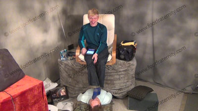 In jeans, Under Armor shirt, very sweaty and dirty blue and grey Under Armor sweat socks, very cocky and arrogant, Nathan is teasing his slave who is laying on the floor beneath his feet for teasing, dominating and more. Total teasing. Sissy is forced to serve his macho young socks and feet and is totally embarrassed and humiliated as next he shoves his sweaty bare feet in the sissy’s face and torments and teases and mocks his slave who can’t resist, while he gives commands, orders and responds to his foot licker! Slave kisses and serves the socked feet, adoring them, smelling them, then bare foot worship and forcing slave to humiliate himself; W/s using the bong and forcing slave to drink it. He likes to show where his toes belong; three camera views (one close up) two other hot angles; Hot erotic foot action during this time as Nathan’s straight feet are served. His control at teasing ways of mocking foot sissys is real as he laughs at our desperate needs and humiliating images of foot sissys in love with his feet. He really likes this worship and teases the sissy for needing to worship his feet and be his foot bitch. This blonde jock is so cocky.