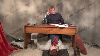 It's WSOX Radio and Dr. Enzone wrote the book on “Straight Guys Rule” and had a doctorate in Psychology and Male Domination with a Sports Minor. In jeans, sweaty brown socks with red toes and heels, Dr. Enzone takes questions from his listeners while on the air and while having a slave at his feet. He gives his advice, and comments on the power that Macho Jocks have over foot slaves. He is laughing and sitting at the radio desk with the mike; his slave beneath his feet in the radio studio; while gives his advice for real on dominating the sissy foot slaves. Socked feet torment first, then barefoot worship as he is “live” on the radio and mocks the slave using his super straight feet and laughing about it! Slave kisses and serves the feet, adoring them, smelling them and forcing slave to humiliate himself at his feet; The show is a huge success on how straight socked and bare feet are to be served; three camera views (one close up) and two other very sensual angles. Hot erotic foot action during this time of his power – what else on WSOX radio?