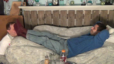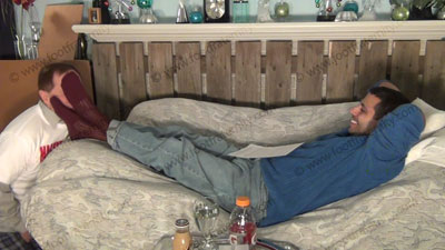 In jeans, very sweaty burgundy thick and thin socks, very cocky Latino Stud Roberto is teasing his slave who is kneeling on the ground at his feet to be totally embarrassed and humiliated as Master Roberto lays back on the sofa and has his sweaty socked feet in the sissy’s face to torment and tease and mocks his slave while he gives commands, orders and responds to his foot licker! Slave kisses and serves the socked feet, - adoring them, licking them, forcing slave to humiliate himself with foot worship of this very macho jock; He likes to show where his socked feet belong; three camera views (one close up) two other hot angles; Hot erotic foot action during this time as Roberto’s straight feet are served. His control at teasing ways of mocking foot sissys is real as he laughs at our desperate needs and humiliating images of foot sissys in love with his socked feet. He really likes this worship and teases the sissy for needing to worship his feet and be his foot bitch. This stud rules with the power; teasing, mocking and the power of having a cracker foot slave!