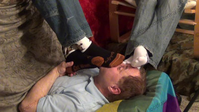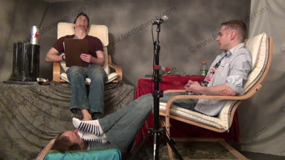 In jeans, sweaty short socks, Mick is laughing & sitting above his slave who is laying on the ground beneath his feet to be totally embarrassed & humiliated as he dangles his sweaty feet in the sissy’s face while interviewing Riley on the radio, who is doing the same to the slave. Four straight feet in one sissy’s face! Socked feet torment & tease and mocks the slave while they totally humiliate him using their super straight feet and laughing about it! Slave kisses & serves the socked feet, adoring them, smelling them, then bare foot worship & forcing slave to humiliate himself with foot worship of these hot guys while they mostly ignore the slave and promote themselves on the radio show; They like to show how straight feet & toes are to be served; three camera views (one close up) & two other very sensual angles. Hot erotic foot action during this time as Mick’s straight feet are served along with Riley. The control at teasing ways of mocking foot sissys is real as they laugh at our desperate need with straight feet. They love this power, control & worship as the show unfolds and is on the air! Mick is amazing.