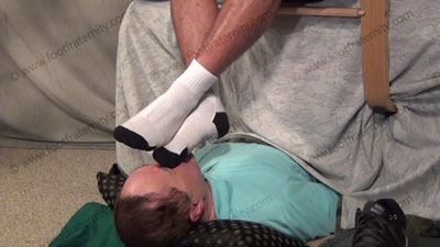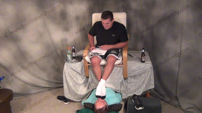 In shorts, T-shirt, white sweaty Adidas, mesh, work out socks, macho Graham is teasing his slave who is laying on the ground beneath his feet to be totally embarrassed and humiliated as he dangles his sweaty socked feet in the sissy’s face, and torments and teases and mocks his slave while he tells true and false statements and takes in the worship with some orders and responds to his foot licker! Slave kisses and serves the socked feet, adoring them, smelling them to humiliate himself with foot worship of this very macho jock; then barefoot worship and action; He likes to show where his toes belong; three camera views (one close up) two other hot angles; Hot erotic foot action during this time as Graham’s straight feet are served. His control at teasing ways of mocking foot sissys is real as he laughs at our desperate needs and humiliating images of foot sissys in love with his bare feet. He really commands this worship and teases the sissy for needing to serve his feet and be his foot bitch. This football jock rules.