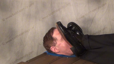 All the scenes from a hot close up view. The descriptions above describe the close up action. Graham teases and torments the sissys who are need to worship his feet. He built a boxed in coffee table where his slave’s head sticks thru …