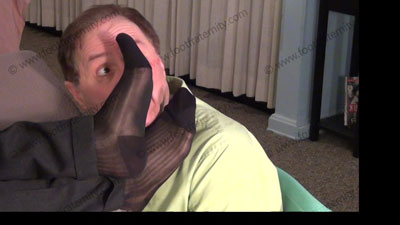In black slacks, pull over shirt, dark thick and thin dress socks, macho Graham is teasing his slave who is kneeling at his feet to be totally embarrassed and humiliated as he shoves his sweaty feet in the sissy’s face, and torments and teases and mocks his slave makes humiliation commands and takes in the worship with some orders and responds to his foot licker! Graham is sitting in a Lazy boy chair with his feet up for worship. Slave kisses and serves the socked feet, adoring them, smelling them to humiliate himself with foot worship of this very macho jock; (no barefoot) He likes to show where his toes belong; three camera views (one close up) two other hot angles; Hot erotic foot action during this time as Graham’s straight feet are served. His control at teasing ways of mocking foot sissys is real as he laughs at our desperate needs and humiliating images of foot sissys in love with his feet. He really commands this worship and teases the sissy for needing to serve his feet and be his foot sissy. Much verbal and humiliation at the feet of this jock master. Socked feet action only.