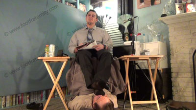 It’s WSOX Radio and Dr. Gridiron wrote the book on “Straight Guys Rule” and had a doctorate in Psychology and Male Domination with a Sports Minor. In slacks, dress shirt, tie, sweaty black thick and thin sheer socks, Dr. Gridiron takes questions from his listeners while on the air and while having a slave at his feet. He gives his advice, and comments on the power that Macho Jocks have over foot slaves. He is laughing and sitting at the mike; his slave lying at his feet; while gives his advice for real on dominating the sissy foot slaves. Then bare feet worship, as he is “live” on the radio and mocks the slave using his super straight feet and laughing about it! Slave kisses and serves the feet, adoring them, smelling them and forcing slave to humiliate himself at his feet; The show is a huge success on how straight feet are to be served; three camera views (one close up) and two other very sensual angles. Hot erotic foot action during this time of his power – He responds on and off the air; Hot erotic foot action during this time of his power – He loves to blackmail his foot slaves.