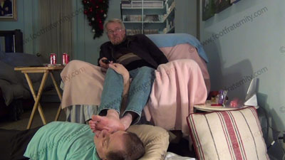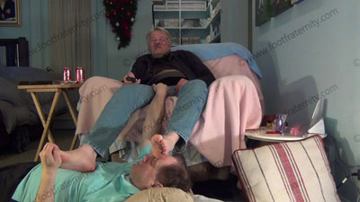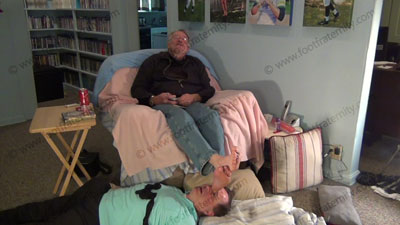 Rodd sits back and teases. He is wearing black thick and thin socks and in a lounge chair. His socked feet are worshiped, then much barefoot worship. His feet wiped all over the slave’s face that is on the floor at his feet. Three different hot views of this scene. Teases, mocks and humiliates. Very sensual and erotic. Then he relaxes to watch hot films while his feet are worshiped. He humiliates us and sees our desperation for having his feet in our face.