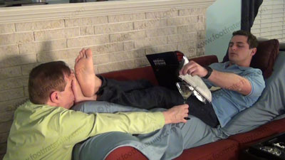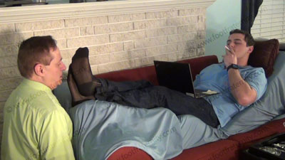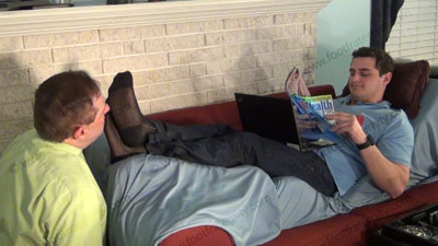 That day continues with sock and bare foot service to Graham as Graham relaxes in the CEO’s office. He decided at that point to take control of his CEO. We find him kneeling at the sofa at Graham’s feet for worship his feet as Graham relaxes. The CEO is totally embarrassed and humiliated as Graham shoves his sweaty feet in the sissy’s face, and torments and teases and mocks his slave makes humiliation commands and takes in the worship with some orders and responds to his foot licker! Slave kisses and serves the socked and bare feet now, adoring them, licking them to humiliate himself with foot worship of this very macho jock; Graham likes to show the new control he has over his CEO who hired him; three camera view (one close up) two other hot angles; Hot erotic foot action during this time as Graham’s straight feet are served. His control at teasing ways of mocking foot sissys is real as he laughs at our desperate needs and humiliating images of foot sissys in love with his feet. This was only the beginning.