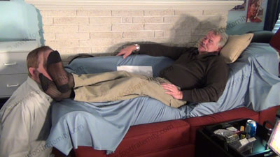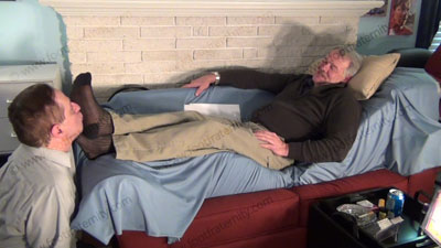 Rodd lying on the sofa and teasing about having foot worship. He is wearing black thick and thin socks and in a lounge chair. His socked feet are worshiped, sniffed and wiped all over the slave’s face that is on the floor at his feet. Then bare foot worship. All while Rodd tells the slave his dirty little secret of being in love with Rodd’s feet and he is watching hot films to please this straight stud. Three different hot views of this scene. He teases and KNOWS we need his feet more and more. Very sensual and erotic. He humiliates us and sees our desperation for having his feet in our face. Rodd rules like a macho professional who knows how bad we NEED his feet.