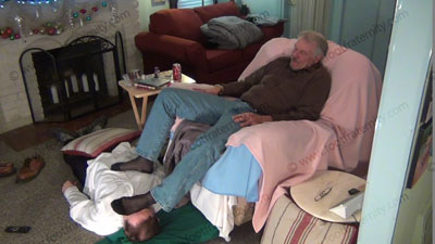 Close up of Rodd siting back and has the sissy at the sissy trap foot stool. He is wearing royal blue thick and thin sweaty socks and in a lounge chair. His socked feet are worshiped as he gives out sissy candy to humiliate his slave; His feet wiped all over the slave’s face who is kneeling at his feet. Teases, mocks and humiliates; Then bare foot worship. Then he is in a Lazy Boy Chair watching hot XXX and getting excited as he uses slave as a foot rest. He humiliates us and sees our desperation for having his feet in the face of a foot sissy.