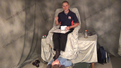 Dressed casually, in his sweaty sheer socks, these three views are of this Macho athletic jock having his socks sniffed & worshiped, while he plays the board game intended to humiliate and dominate foot slaves! He teases and mocks his foot slave who is lying on the floor beneath his feet while worshiping his socks & bare feet. Riley teases about doing the game of foot humiliations to superior Str8 macho guys! He commands foot worship, torments slave; mocking, teasing & humiliation to his helpless foot slave. He loves this foot worship, seeing the teasing; socked & bare foot adoration while watching the sissy foot slave be completely embarrassed underfoot.