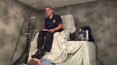 Dressed casually, in his dark sweaty sheer socks, these three views are of this Macho coach having his socks sniffed & worshiped, while he is on the radio & answers questions about how he uses his feet on his slave to make us NEED them all the more! He teases and mocks his foot slave who is lying on the floor beneath Riley’s feet while worshiping his socked feet. Riley teases about how to put slaves in our place to superior Str8 macho guys! He orders foot worship, torments slave; mocking, teasing & humiliation to his helpless foot slave all while on “the air”. He loves this foot worship, seeing the humiliation; socked adoration while conditioning the sissy foot slave to need this forever.