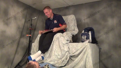 He is a Straight, macho, alpha male, stud who believes that fags should be his "male foot slaves" who bow to him and grovel at his feet. When we first met, I confessed to him that I have a "male foot fetish" for men's feet, and "I kiss feet." He laughed in my faggot face and said that now I can be his "cash slave", or "human ATM" and pay for the privilege of "worshiping my feet", because I am his "homo bitch"? I was humiliated and embarrassed to admit to him that I needed, not just wanted to "lick his feet", "suck his toes", "smell his sweaty socks" and "kiss his feet". He said that I was a "queer sock lover", and he plans to take advantage of letting me "serve straight guys" and "worship straight men". "You're gonna pay, pay and pay more". just because he has "perfect male feet" and I am a "toe jam" eater who knows that "straight guys rule" "Yes, Foot Master, Sir, You are a stud who knows how to give humiliation and domination" to a "faggit foot slave". He knew instinctively that I would beg to "lick between his toes", have him "walk all over me", "trample me", and "shove his foot in my face". I was a pussy fag who had to have this treatment from a heterosexual man who would love the power trip and use me to "lick his feet", "suck his toes", "kiss feet" and "take a whiff of his sweaty socks" because I have a "gay foot fetish". This was the beginning of how I got Master ______ to be a male model for the Foot Fraternity. He knew that I was a foot lover and needed "his feet in my face". It started with simple photos of his "male bare feet" and quickly became a situation where I was his "foot slave" on a regular basis and had to promote him on the web site to have the visitors buy his "male foot fetish film", and "foot fetish videos" just because they also desired to "kiss his sweaty foot", "lick his foot sweat" and be "his foot slave". He got paid for every visit with me as he would start off by saying, "You are my bitch", so no more "free foot photos". It's time that you realized who's your daddy and that you will pay to be my "toe sucker" and "foot slave for life". I knew that I wanted to be "his footslave", but didn't know that it would cost me so much. He forced me to make a choice between staying with my lover or his feet! I can't believe that he forced me to do that. I was seduced by the "arch of his foot" on this "sexy guy", and needed to be his "foot mat" and foot stool. I had to pay to that honor! I chose his feet and ended my relationship. He asked if I need to "smell feet", "kiss foot" and "lick boot" as he laughed in my face. "Yes Sir", "I worship Straight men". I have a strong "male foot fetish" and I run an international organization for guys with a "shoe fetish" and want to be a "trample slave" or "toe sucker" to guys feet." His eyes opened wider and he asked if it meant that there are thousands of footslaves and "foot lickers" who want to take a "whiff of my feet"? Is this a "gay man foot fetish club" or something? I told him the truth and he has OWNED me ever since that confession. I have had to pay for his vacations, buy him a truck, and pay for every visit he made when I have to "worship him", "smell his socks", "kiss his toes", caress his feet and beg him to "walk on me" with "his perfect feet". To this day, he still loves this power that he has over me and other foot fags who have this intense need to "smell the foot sweat" of "his sweaty feet". Yes, we have a "gay foot fetish" and need this jock to order us to "Smell my feet" or "Sniff my socks" and now we have to pay the price for his "male foot fetish movies". He loves the control that he has by "wiggling his sweaty toes in my face", knowing that I and a "toe sucker" and will obey his orders. He was amused when I first asked to "eat his toe jam" and beg him to clip his toe nails in my mouth for me to swallow. Now he charges for this and makes fags all over the world pay for this gift from him! I asked about doing "male foot fetish video" and he loved the idea of being paid for this while he just sat back and relaxed with a beer while watching a football game or some hot straight films while "I am his footstool" or footmat. He would even have his straight brother come over and the two would play video games while I had to "smell their feet", worship him and pay them for "kissing the guys feet"! His brother also became a Foot Frat model (that is a clue for you to guess who this model is). Now he just walks in and I have to "kiss his boots" every time he enters or leaves my house. He knows that we all need to hear him command us to "Sniff my socks" or "Smell my feet" because we are his "gay foot slave". He knows that he can make the best "male foot fetish video" and collect big time when he laughs at us underfoot while saying, "He has a foot fetish" and "he needs my straight feet". This is all real, because I am his foot slave, and because we need to "make love to his feet", he can have anything he wants. His feet are very sweaty and smelly and this makes his laugh more when we have to "lick between his toes" and "eat his toe jam". This Adonis loves to "shove his feet in my face" while laughing at my humiliation because we "adore his feet". He can just "wiggle his toes" in our face and bark out an order, knowing that it will be done. It has cost a great deal to keep this Male Master as a Frat model Can you guess which model has just been described? Send in your comments or your guess to: Dug Gaines and if you are right, win a free hot story book of scenes of this "male foot fetish!"