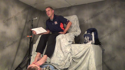 Dressed casually, in his dark sweaty sheer socks first, then puts on white ankle sweaty coaching sox for worship! These three views are of this Macho coach having his socks sniffed then bare feet worshiped, while he is on the radio & answers questions about how he uses his feet on his slave to make us NEED them all the more! He teases and mocks his foot slave who is lying on the floor beneath Riley’s feet while worshiping his socked & bare feet. Riley teases about how to put slaves in our place to superior Str8 macho guys! He orders foot worship, torments slave; mocking, teasing & humiliation to his helpless foot slave all while on “the air”. He loves this foot worship, seeing the humiliation; foot adoration while conditioning the sissy foot slave to need this constantly.