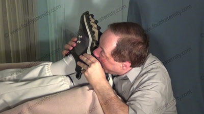 Wearing baseball uniform, these three views are of this Macho athletic stud having his cleats licked and socks sniffed & bare feet worshiped after the game. Slave is kneeling at his feet as he relaxes on the sofa while checking out his Playboy mags. He loves foot worship, torments slave; cleats; socked foot & bare foot adoration and mocking & teasing the sissy foot slave