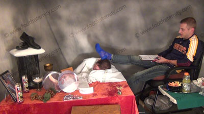 The priest is ready for more when Jock Riley wears his muddy baseball cleats & puts them on the altar to be licked clean! then his socks; then bare feet; to humiliate and for worship by the priest. He commands foot worship. He gives his orders, and teases on the power that Macho Jocks have over foot slaves. He is mocking & sitting at the altar with the priest slave kneeling to his feet. Priest kisses & serves the cleats, socks & feet, takes communion from the macho toes; files the sweat off the feet onto a plate then licks it up, adoring them, smelling them & forcing to be humiliated at his feet; This is how straight Jock’s socked & bare feet are to be worshiped; three camera views (one close up) & two other very sensual angles. Hot erotic foot action during this time of his power – He loves to have this worship & adoration from his foot sissies all done at the altar.