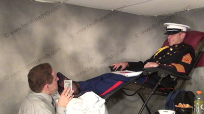 In his dress blues Marine Uniform & wearing his sweaty sheer socks, these three views are of this Marine Riley sitting in his gravity chair with his bitch kneeling at his feet while he is having his socks sniffed & worshiped, while he takes cash from the sissy for falling in love with his feet! He teases and mocks his foot slave who is kneeling on the floor before Riley, while worshiping his socked feet. Conceited Riley talks about his narcissistic self & how perfect he is to all slaves & they love to worship his feet! He loves this foot worship, seeing the humiliation; socked foot adoration while making the sissies pay for it. Very HOT Marine scene!