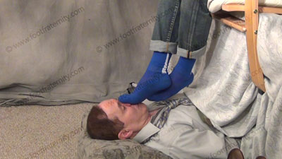 In his jeans & variety of dirty socks; Riley has his slave on the floor to serve his feet in these close up only scenes from the above films on a different angle. Very Exciting to see this so very close up!