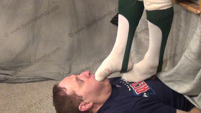 He is a Straight, macho, alpha male, stud who believes that fags should be his "male foot slaves" who bow to him and grovel at his feet. When we first met, I confessed to him that I have a "male foot fetish" for men's feet, and "I kiss feet." He laughed in my faggot face and said that now I can be his "cash slave", or "human ATM" and pay for the privilege of "worshiping my feet", because I am his "homo bitch"? I was humiliated and embarrassed to admit to him that I needed, not just wanted to "lick his feet", "suck his toes", "smell his sweaty socks" and "kiss his feet". He said that I was a "queer sock lover", and he plans to take advantage of letting me "serve straight guys" and "worship straight men". "You're gonna pay, pay and pay more". just because he has "perfect male feet" and I am a "toe jam" eater who knows that "straight guys rule" "Yes, Foot Master, Sir, You are a stud who knows how to give humiliation and domination" to a "faggit foot slave". He knew instinctively that I would beg to "lick between his toes", have him "walk all over me", "trample me", and "shove his foot in my face". I was a pussy fag who had to have this treatment from a heterosexual man who would love the power trip and use me to "lick his feet", "suck his toes", "kiss feet" and "take a whiff of his sweaty socks" because I have a "gay foot fetish". This was the beginning of how I got Master ______ to be a male model for the Foot Fraternity. He knew that I was a foot lover and needed "his feet in my face". It started with simple photos of his "male bare feet" and quickly became a situation where I was his "foot slave" on a regular basis and had to promote him on the web site to have the visitors buy his "male foot fetish film", and "foot fetish videos" just because they also desired to "kiss his sweaty foot", "lick his foot sweat" and be "his foot slave". He got paid for every visit with me as he would start off by saying, "You are my bitch", so no more "free foot photos". It's time that you realized who's your daddy and that you will pay to be my "toe sucker" and "foot slave for life". I knew that I wanted to be "his footslave", but didn't know that it would cost me so much. He forced me to make a choice between staying with my lover or his feet! I can't believe that he forced me to do that. I was seduced by the "arch of his foot" on this "sexy guy", and needed to be his "foot mat" and foot stool. I had to pay to that honor! I chose his feet and ended my relationship. He asked if I need to "smell feet", "kiss foot" and "lick boot" as he laughed in my face. "Yes Sir", "I worship Straight men". I have a strong "male foot fetish" and I run an international organization for guys with a "shoe fetish" and want to be a "trample slave" or "toe sucker" to guys feet." His eyes opened wider and he asked if it meant that there are thousands of footslaves and "foot lickers" who want to take a "whiff of my feet"? Is this a "gay man foot fetish club" or something? I told him the truth and he has OWNED me ever since that confession. I have had to pay for his vacations, buy him a truck, and pay for every visit he made when I have to "worship him", "smell his socks", "kiss his toes", caress his feet and beg him to "walk on me" with "his perfect feet". To this day, he still loves this power that he has over me and other foot fags who have this intense need to "smell the foot sweat" of "his sweaty feet". Yes, we have a "gay foot fetish" and need this jock to order us to "Smell my feet" or "Sniff my socks" and now we have to pay the price for his "male foot fetish movies". He loves the control that he has by "wiggling his sweaty toes in my face", knowing that I and a "toe sucker" and will obey his orders. He was amused when I first asked to "eat his toe jam" and beg him to clip his toe nails in my mouth for me to swallow. Now he charges for this and makes fags all over the world pay for this gift from him! I asked about doing "male foot fetish video" and he loved the idea of being paid for this while he just sat back and relaxed with a beer while watching a football game or some hot straight films while "I am his footstool" or footmat. He would even have his straight brother come over and the two would play video games while I had to "smell their feet", worship him and pay them for "kissing the guys feet"! His brother also became a Foot Frat model (that is a clue for you to guess who this model is). Now he just walks in and I have to "kiss his boots" every time he enters or leaves my house. He knows that we all need to hear him command us to "Sniff my socks" or "Smell my feet" because we are his "gay foot slave". He knows that he can make the best "male foot fetish video" and collect big time when he laughs at us underfoot while saying, "He has a foot fetish" and "he needs my straight feet". This is all real, because I am his foot slave, and because we need to "make love to his feet", he can have anything he wants. His feet are very sweaty and smelly and this makes his laugh more when we have to "lick between his toes" and "eat his toe jam". This Adonis loves to "shove his feet in my face" while laughing at my humiliation because we "adore his feet". He can just "wiggle his toes" in our face and bark out an order, knowing that it will be done. It has cost a great deal to keep this Male Master as a Frat model Can you guess which model has just been described? Send in your comments or your guess to: Dug Gaines and if you are right, win a free hot story book of scenes of this "male foot fetish!"