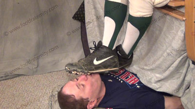 In full uniform with dirty baseball socks; Riley has his slave on the floor to serve his feet in these close up only scenes from the above films on a different angle. Very Exciting to see this so very close up!