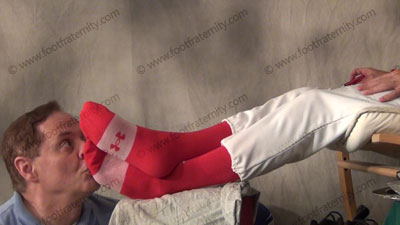 In full uniform with dirty baseball socks; Riley has his slave on the floor to serve his feet in these close up only scenes from the above films on a different angle. Very Exciting to see this so very close up!