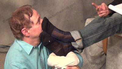 In professional clothes, various sox; Riley has the CEO serve his shoes, socks & feet and makes the roles reversed with his feet in the face of the sissy who is in these close up only scenes from the above films on a different angle. Really erotic to see this close up!