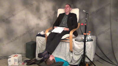 These three views are of Coach Riley - In sports coat, slacks & sheer socks in the sissy’s face for worship as he is sitting above his foot bitch who is lying beneath his feet; while Riley is on the air, having sheer socked feet sniffed, licked, kissed & worshiped. The Coach gives orders to the sissy for serving his feet! He teases and mocks his foot slave who is underfoot & worshiping his socked feet during a live radio interview! Coach talks about his perfect self & how great he is to all slaves because they love to worship his feet & take time to massage them! He loves this worship, seeing the humiliation and adoration while making the sissies pay & give him gifts for these sessions. Very demeaning & humiliation – he teaches his audience how to bully foot slaves while his perfect feet are in the sissy’s face & mouth!