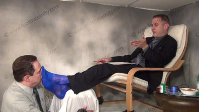 These three views (one close up) are of Riley (In sports coat, tie, slacks, sheer thick & thin dress socks & his Bass Weejun penny loafers. NBC has questions on how Riley discovered that he was hired because the CEO was “into” his feet! Riley tell them how he used this info for his benefit & put the boss beneath his feet! He is sitting above his foot bitch that is locked in the fag-trap with his face level with Riley’s foot rest. Gifts and pay must be given daily to Riley from his “boss” for having his shoes, socked feet & bare feet sniffed, licked, kissed & worshiped. Riley gives attitude to the sissy for falling in love with his feet! He teases and mocks his foot slave who is now screwed before him, while worshiping his shoes, bare feet & socks! Riley talks about what the future will hold for this power rush he is feeling! He loves this worship, seeing the humiliation and adoration while making the CEO pay for these sessions. NBC is very impressed at this very humiliating & intense power rush.