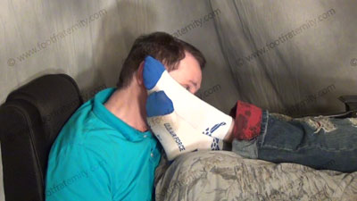Casual look, various short sweat sox; Riley is lounging in the gravity chair & has his sissy on the floor beneath his feet in these close up only scenes from the above films on a different angle. Close up shows great detail on his perfect feet.