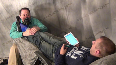These three views are of Riley - In jeans, hoodie, black loafers & blue thick & thin sheer socks in the sissy’s face for worship as he controls him to need to serve these shoes, & socked feet. He is lounging in his gravity chair comfortably as his foot bitch who is humiliating himself on the floor at his feet; while Riley is having his socked feet sniffed, licked, kissed & worshiped. Then he puts his cigarette out in the slave’s hand! This Jock knows ALL about his slave who fell in love with his feet. Then he really humiliates & dominates him! He teases and mocks his foot slave who is underfoot & worshiping his feet! Then makes him confess his love for the macho feet. Sock worship in this film. He loves this adoration & seeing the humiliation while making the sissies submit to his perfect feet & embarrasses to the high levels of control.