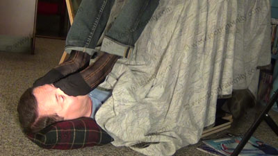 In jeans, sports shirt & loafers and sheer socks in the sissy’s face for worship as he is sitting over his slave at the station in these close up only scenes from the above films on a different angle!