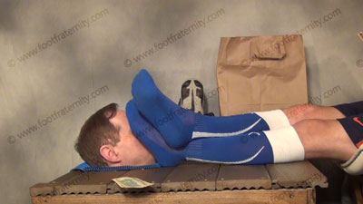 In jeans, sports shirt & loafers and sheer socks/then blue sport socks in the sissy’s face for worship as he is lying down with his slave at his feet, then with slave locked in the lock box in these close up only scenes from the above films on a different angle!