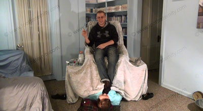 These three views are of Riley - In jeans, hoodie, black loafers & black thick & thin sheer socks in the sissy’s face for worship as he controls him to need to serve these shoes, socked feet. He is sitting over his slave comfortably as his foot bitch who is humiliating himself on the floor at his feet; while Riley is having his socked & bare feet sniffed, licked, kissed & worshiped. This Jock clips his toe nail to be swallowed by his sissy. Then he really humiliates him! He teases and mocks his foot slave who is underfoot & worshiping his feet! Then makes him confess his need for the macho feet. He loves this adoration & seeing the humiliation while making the sissies submit to his perfect feet & beg for the privilege of being in love with his feet.
