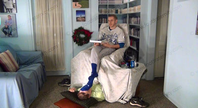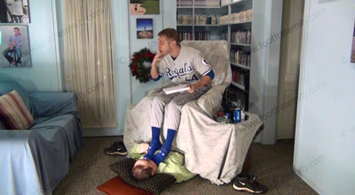 In full uniform, royal blue Under Armor sweaty socks, cleats, macho Riley is teasing his slave who is beneath his sweaty socked feet to be totally embarrassed and humiliated as he shoves his sweaty socked feet in the sissy’s face, and torments and teases and mocks his slave while he reads the slave’s contract of servitude to his feet; and responds to his foot licker! Slave kisses and serves the socked feet, adoring them, smelling them to humiliate himself with foot worship of this very macho jock; Superior Jock Riley uses slave’s hand as an ashtray and grids his cigarette out in his hand to show his power; He likes to show where his feet belong; three camera views (one close up) two other hot angles; Hot erotic foot action during this time as Riley’s straight feet are served. His control at teasing ways of mocking foot sissys is real as he laughs at our desperate needs and humiliating contract of foot sissys who are in love with his feet. He really teases and mocks the bitch for needing to serve his feet and be his foot sissy. This baseball jock rules.