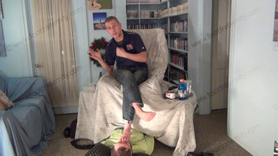 These three views are of Riley - In jeans, & sports shirt, sheer socks in the sissy’s face for worship as he controls him to need to serve these feet. He is lounging above the sissy comfortably as his foot bitch who is humiliating himself on the floor beneath his feet; while Riley is having his socked & bare feet sniffed, licked, kissed & worshiped. This Jock talks about slave’s worship to his feet & his other orders! He teases and mocks his foot slave who is underfoot & worshiping his feet! He is sitting over his slave comfortably as his foot bitch who is humiliating himself on the floor at his feet by washing his feet in basin. Bare foot & sock worship in this film. He loves this adoration & seeing the humiliation while making the sissies submit to his perfect feet & any command or order must & will be obeyed by kissing his feet.