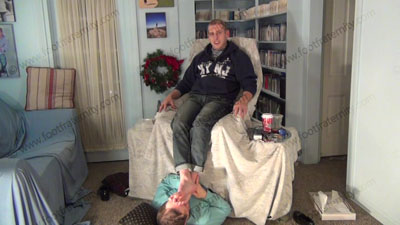 These three views are of Riley - In jeans, & hoodie, sheer, then work out socks in the sissy’s face for worship as he controls him to need to serve these feet. He is lounging above the sissy comfortably as his foot bitch who is humiliating himself on the floor beneath his feet; while Riley is having his socked & bare feet sniffed, licked, kissed adored & worshiped. His foot bitch is humiliating himself on the floor beneath his feet; Riley is teasing & mocking him, then stands over him to wipe his feet on the sissy’s face. He owns his foot slave who is underfoot & worshiping his feet. Sock & bare worship in this film. He loves this adoration & seeing the humiliation while making the sissies submit to his perfect feet & decides to treat us like dirt.