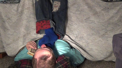 In different kinds of socks & bare feet He is getting complete foot worship while in sitting over his peasant slave & tells about his power in these close up only scenes from the above films on a different angle! VERY hot to see close ups on the feet! King Riley rules his slaves.