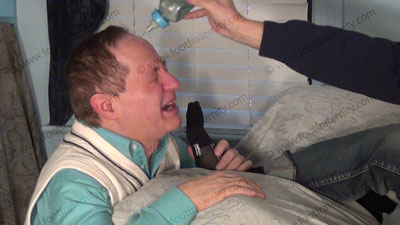 These three views (one close up) are of Riley - In jeans, & hoodie & sheer socks then bare foot. Riley is lounging on his sofa with his sissy kneeling at his feet to adore him. His feet are in the sissy’s face for worship as he controls him to need to serve these feet while lying back & relaxing. THEN he does water sports in a baby bottle & squirts it on sissy’s face & in his mouth as he laughs hysterically !!! He is gives out teasing orders & laughs as the sissy obeys & makes love to his feet, humiliating himself by kneeling on the floor at his socked feet; all while Riley is having them sniffed, licked, kissed adored & worshiped. He teases, relaxes & watches the slave. His foot bitch is embarrassed to serve him like this; Riley is teasing & mocking him. He owns his foot slave who is at his feet & worshiping them. This was humiliating & embarrassing.
