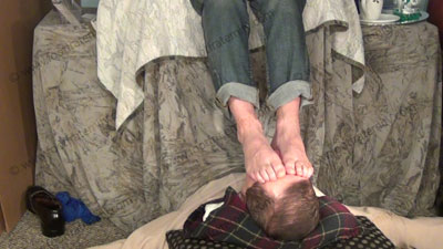In different kinds of socks & bare feet He is getting complete foot worship while in sitting above with his slave lying on the floor at his feet in these close up only scenes from the above films on a different angle! VERY hot to see close ups on the feet!