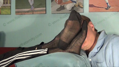 This Straight Macho Stud controlling his slave who Kneeling at his feet on as the Stud relaxes on the sofa wearing sweaty sheer cap-heel and toe socked feet to be totally embarrassed and humiliated as he keeps his sweaty socked feet in the sissy’s face, and torments and teases and mocks his slave while he embarrasses and humiliates all the foot slaves who want him to worships His feet for being the bad guy and doing illegal things or taking things.?? Slave kisses and serves the socked feet, adoring them, smelling them to humiliate himself with foot worship of this very macho guy for doing all of these badass things; while the Master feels his power of making us all truly NEED his feet and domination; He likes to show where his feet belong; three camera views (one close up) two other hot angles; Hot erotic foot action during this time as His straight feet are served. His control at teasing ways of mocking this couple is REAL. Johnny’s Extreme Narcissism comes through and he laughs at our desperate needs because we are in love with his feet because he loves himself and feels that we should worship his feet for that. He really teases and mocks us all for needing to serve his feet and be his foot slave for his own power and amusement. Complete Foot Adoration!