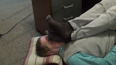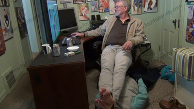 Wearing dark socks, then sheer thick & thin sox; Master Rodd has his slave on the floor at his feet for teasing; foot worship; barefoot licking; foot kissing; domination & used as a foot stool as works on the computer & commands foot worship, torments him; socked foot & bare foot adoration and mocking the helpless slave. Then he just ignores the slave while he enjoys his time on line! Different views, some close ups & some full length! Rodd was born for this control over his foot slaves for decades now!