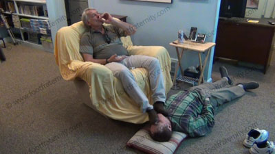 Wearing sheer thick & thin sox, then black cotton socks; Master Rodd has his slave on the floor at his feet for teasing; foot worship; barefoot licking; foot kissing; domination & used as a foot stool as he relaxes in an easy chair, then Rodd teases, with his feet right in the face of the slave as he works on the computer, he commands foot worship, torments him; socked foot adoration and mocking the helpless slave. Different views, some close ups & some full length! Rodd has the sexiest macho voice & loves this power and control over all foot slaves.