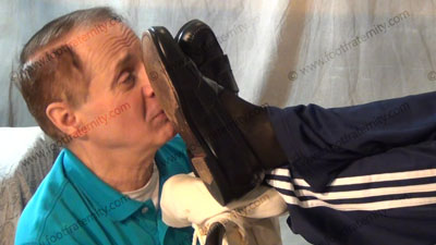 ALL from CLOSE UP Camera of Riley Dressed in a loafers, sheer black with royal blue cap toe & heel sock action only, athletic pants, these three views are of this Macho athletic Riley having his socks sniffed & worshiped, then bare foot adoration & worship, while he teases and mocks his foot slave who is on the floor at the sissy foot stool for the jock’s feet while worshiping his socked & bare feet. Riley commands with orders to serve his superior Str8 feet! He orders foot worship, torments slave; mocking, teasing & humiliation. He loves this foot worship, seeing the humiliation; socked foot adoration while conditioning the slave to need more of this. Then slave puts the blue thick & thin socks on the feet of Conceited Riley who talks about his Macho self & how perfect he is to all homos!