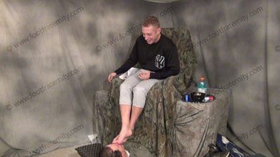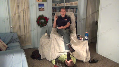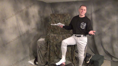He is sitting above his sissy slave who must worship his dirty baseball socks & stirrups. These three views are of Jock Riley - In uniform with socked feet in the sissy’s face for worship as he is sitting over his slave, having his baseball socked feet sniffed, licked, kissed & worshiped. He tells how it feels to get slaves to need his feet while his slave is on the floor beneath his feet! He teases and m....... (click video link to see full description)