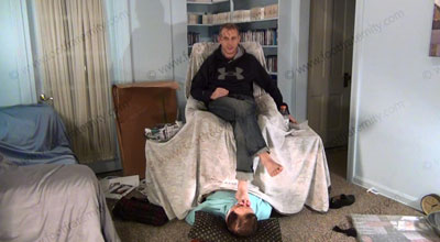 These three views are of Riley - In jeans, & sports shirt, sheer socks in the sissy’s face for worship as he controls him to need to serve these feet. He is lounging above the sissy comfortably as his foot bitch who is humiliating himself on the floor beneath his feet; while Riley is having his socked & bare feet sniffed, licked, kissed & worshiped. This Jock talks about slave’s worship to his feet & hi....... (click video link to see full description)