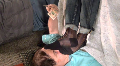 In jeans & various socks, feet in and getting complete foot worship to his feet in these close up only scenes from the above films on a different angle! VERY hot to see close up on the feet! Riley commands this & we must obey!