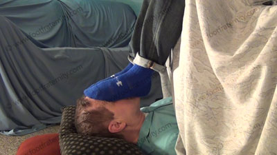 He is on the table above his sissy slave who must clean & worship his dirty blue baseball socks & stirrups then his bare feet. These three views are of Jock Riley - In uniform with feet in the sissy’s face for worship as he is sitting over his slave, having socked & bare jock feet sniffed, licked, kissed & worshiped, he tells how it feels to get slaves to need his feet while his slave is on the floor bene....... (click video link to see full description)