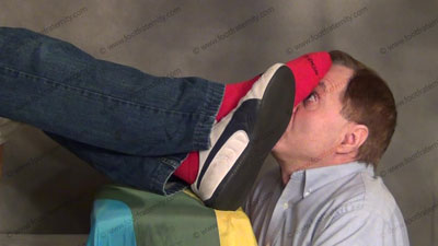 Dr. Gridiron had a doctorate in Psychology so he decided to open an office to counsel sissys who need straight guy’s feet! (He secretly makes them need it more when they are in his therapy session.) In shirt and tie, loafers, the Dr. brings his sweaty work out red Under Armor socks from a football game and work at the gym, Dr. Graham has his patient in a lock box with his head only showing for therapy at ....... (click video link to see full description)