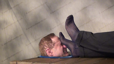 Dr. Gridiron In slacks, loafers, sweaty sheer to toe dark dress socks, Dr. Graham has his patient locked in sweat box table with only his head available for the Dr. to relax and shove his feet in that face. He gives his advice, and comments on the power that Macho Jocks have over foot slaves. He is laughing and rubbing his socked feet in the face of his slave patient’s vulnerable face; while he gives his ....... (click video link to see full description)