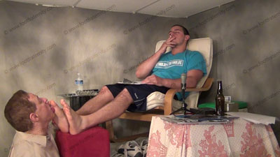 In shorts, blue Under Armor sweaty socks, very cocky Graham is relaxing on the chair and is teasing his slave who is kneeling on the ground at his feet to be totally embarrassed and humiliated as Master Graham relaxes after he played the “sissy board game” and has his sweaty socked feet in the sissy’s face to torment and tease and mocks his slave! Slave kisses and serves the socked feet - adoring them....... (click video link to see full description)